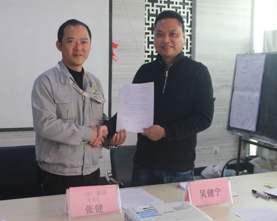 總經理吳健寧與事業四部負責人王成強簽暑協議