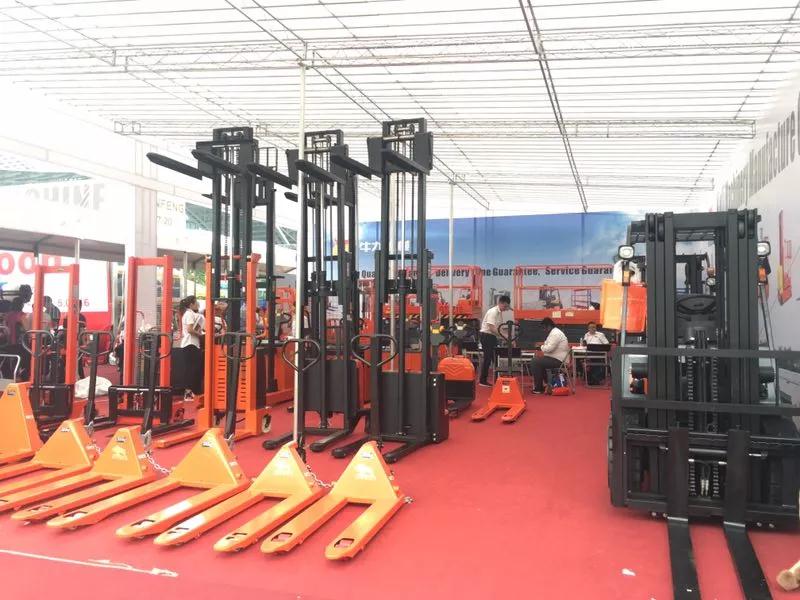 牛力本次參展展出了共三十多個機械產品,產品包括:搬運車系列、升高車系列、叉車系列、高空作業平臺系列、汽車尾板系列等幾大系列和三十多種型號的設備。