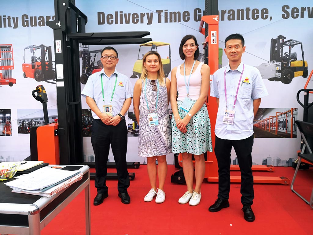 作為廣交會的資深參展商,牛力機械已連續十多年參展廣交會,每年都會給全球客商帶來各類產品的展示,有手動搬運車、升高車、電動叉車、高空作業平臺、取料機、柴油叉車等產品。