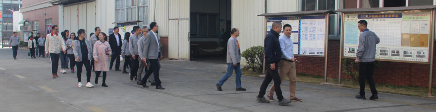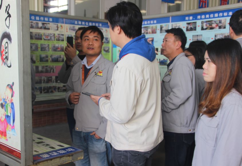 參觀團(tuán)學(xué)習(xí)永堅(jiān)員工培訓(xùn)看板